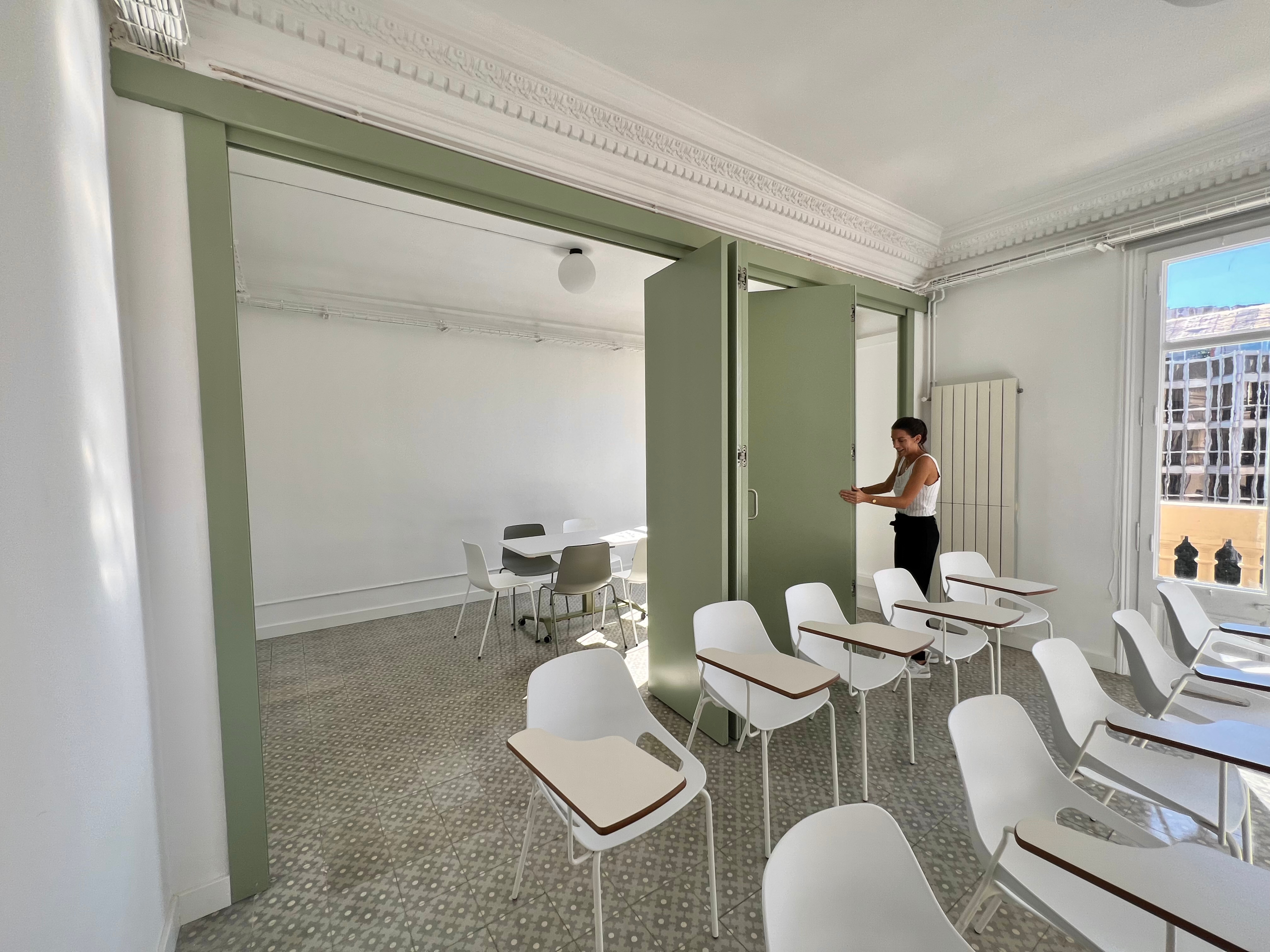 Creating versatile meeting spaces: small rooms for operational meetings and a large room for training sessions and talks.