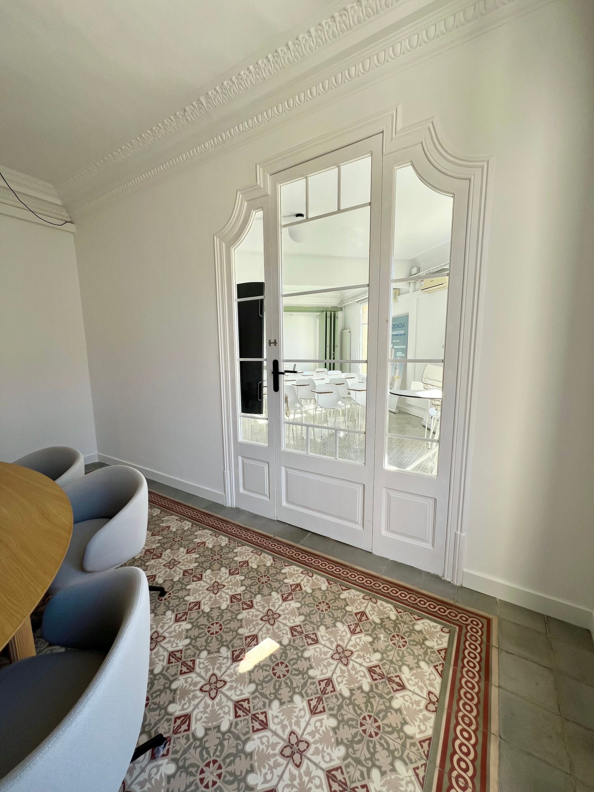The move to a charming building on Carrer Consell de Cent in Barcelona offered the perfect opportunity to rethink how they inhabit their workspace. Their objective was clear: to create a central office that would act as the team’s hub, with meeting rooms of different sizes, a more open and representative space, and an environment aligned with their corporate identity.