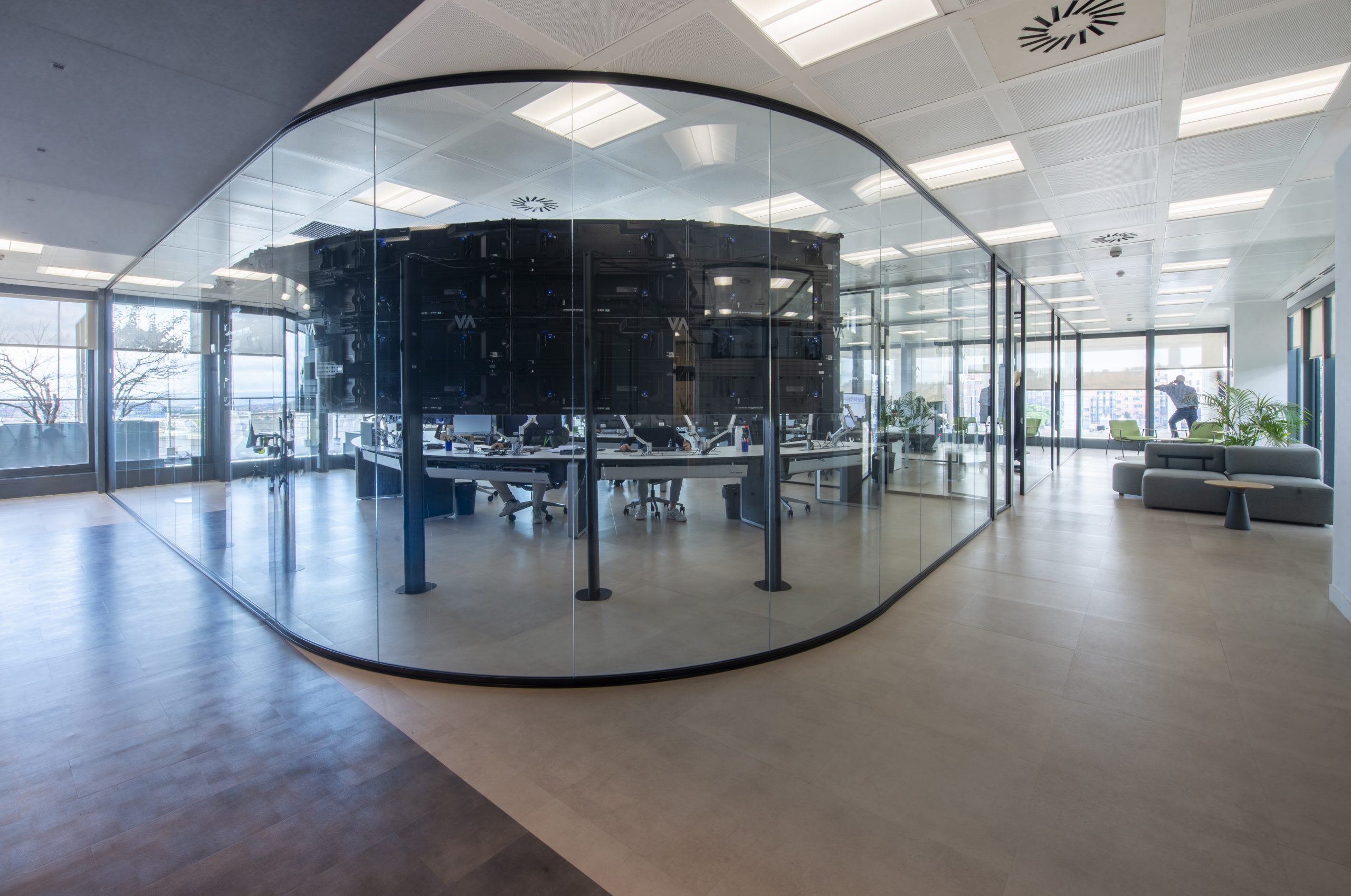También se generó un acceso independiente con mayor privacidad, se habilitó una zona de descanso con taquillas y se aplicaron criterios de ergonomía y confort acústico para garantizar el bienestar de los equipos que trabajan en turnos largos.