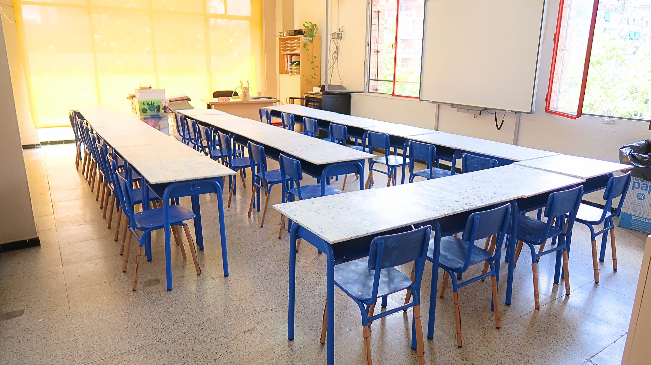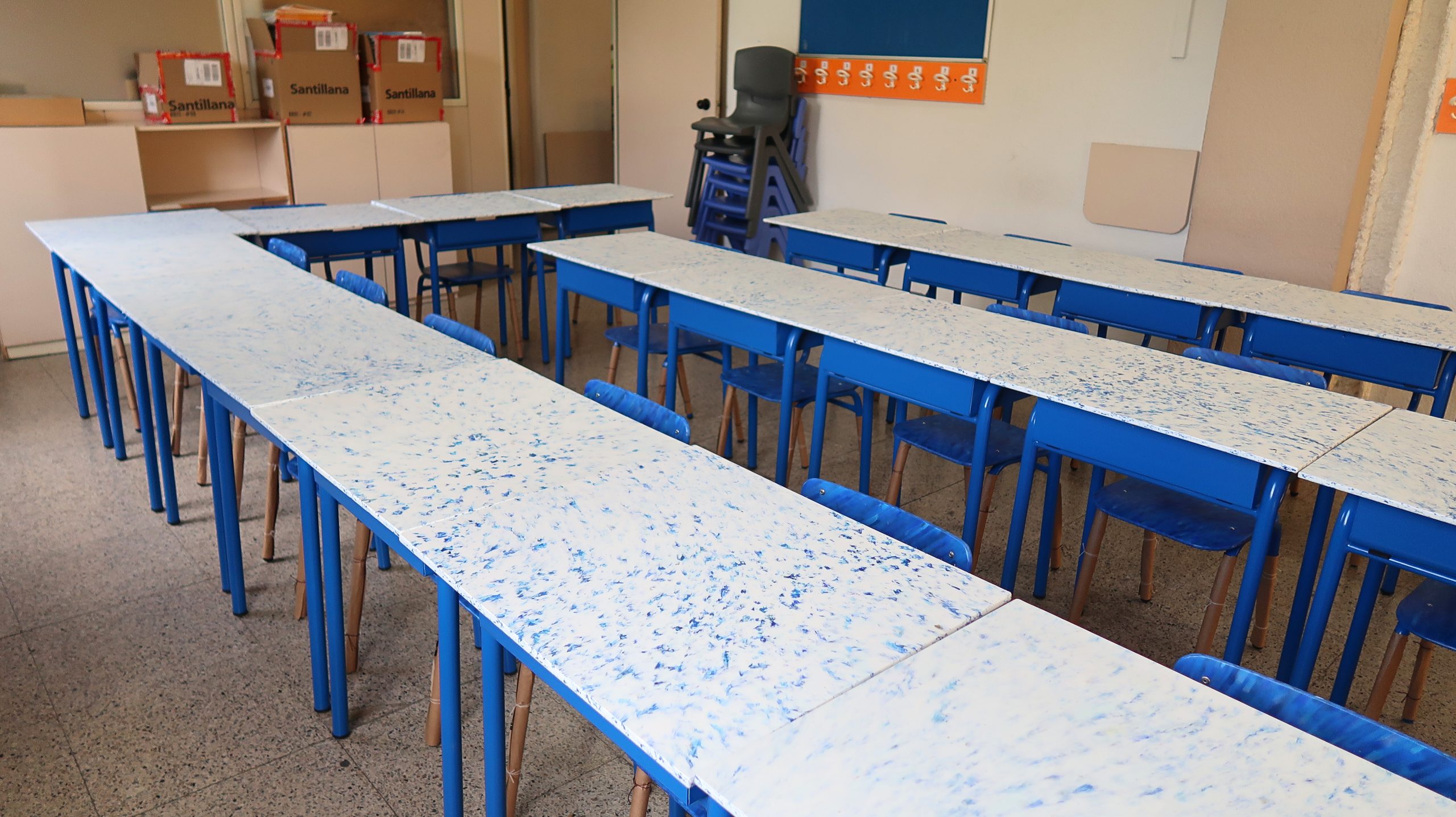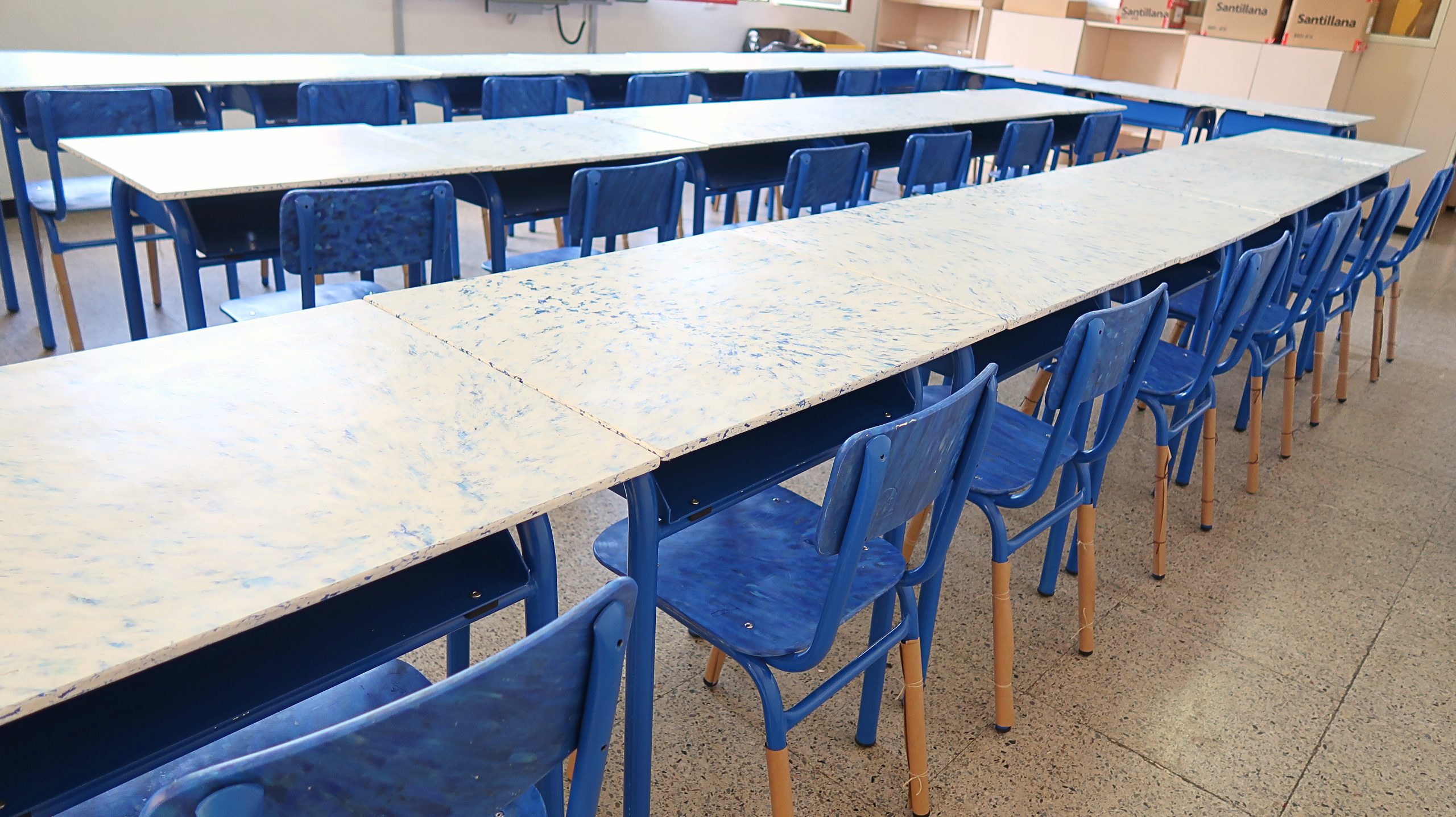 Aula renovada amb mobiliari ergonòmic, resistent i atractiu.